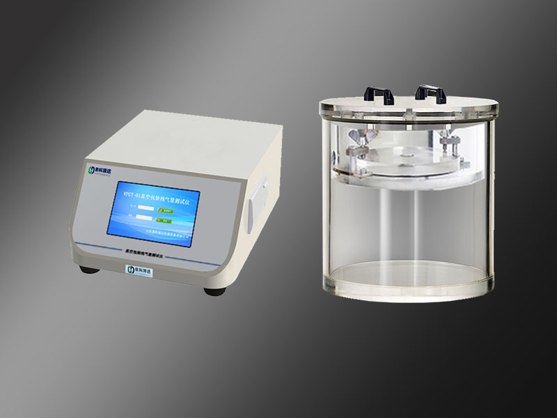 采用壓差法測試原理與液位分析技術相結合的測試方法;試驗中,首先將真空室內(nèi)腔注滿水,蓋上密封板,然后在計量筒內(nèi)緩慢的注水至指定的區(qū)域,蓋好上蓋,壓緊密封板,同時對試驗腔進行抽真空至試樣膨脹,最后通過液位分析及相關計算,得出包裝袋內(nèi)殘余的(氧)氣體量。