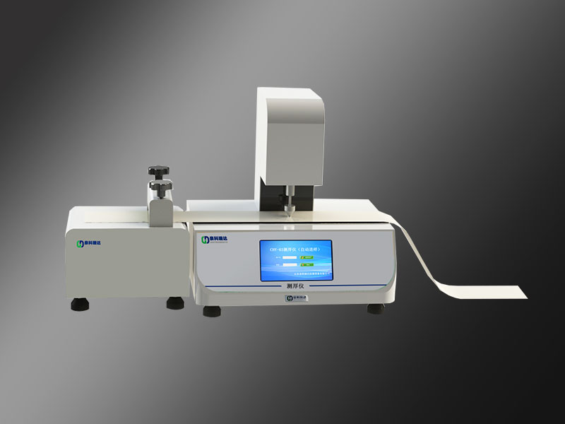 本品采用機(jī)械接觸式厚度測(cè)量方式進(jìn)行厚度的高精度測(cè)量;將厚度測(cè)量頭復(fù)位后置零(測(cè)厚頭與測(cè)厚儀測(cè)試臺(tái)接觸歸零),啟動(dòng)試驗(yàn),測(cè)厚頭達(dá)到最高位,將平整試樣置于測(cè)厚儀測(cè)試平臺(tái)上測(cè)量頭下落后接觸試樣,對(duì)試樣施壓標(biāo)準(zhǔn)規(guī)定的壓力后通過(guò)位移傳感器記錄材料厚度;自動(dòng)進(jìn)樣器按用戶設(shè)定的測(cè)試間距牽引試樣進(jìn)給,至設(shè)定間距停止,測(cè)量頭下行測(cè)試厚度,按設(shè)定的間距數(shù)量?jī)x器完成全自動(dòng)厚度測(cè)試,并記錄測(cè)試過(guò)程數(shù)據(jù),在試驗(yàn)結(jié)果后給出統(tǒng)計(jì)結(jié)果。
