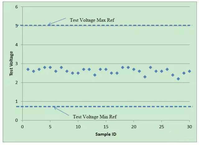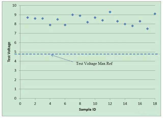 圖5 缺陷樣品的測試電壓(樣品數量18個)