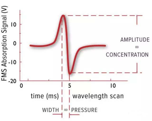 圖7 激光法光譜圖,其中吸收峰的寬度和頂空壓力(真空度)成正比