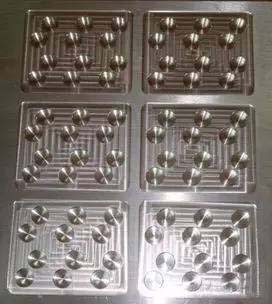 泡罩由于具有多個孔,且里面裝的一般是片劑,激光法和高壓放電法通常不適用。真空衰減法可以用于測泡罩,因為測試腔體可以根據泡罩的形狀和大小進行定做,而且在腔體的上方可以安裝壓力傳感器,對漏點進行定位。通常真空衰減法測定泡罩可以獲得大約15um的測試精度。圖8是泡罩的測試腔體。