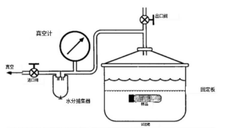 6.2真空計(jì),來(lái)自真空源的進(jìn)氣管,和通向大氣的出口管,應(yīng)密封到蓋內(nèi)。入口管和出口管應(yīng)配備手動(dòng)閥門(mén)。真空計(jì)必須是實(shí)驗(yàn)室質(zhì)量的,全量程范圍從0到100kPa(0到14.5 psi),并帶有最小刻度(分辯率)不大于2 kPa(0.3 psi)(0.3Psi)和精度到1%以內(nèi)。應(yīng)在真空計(jì)和真空源之間安裝一個(gè)合適的水分收集器(油水分離器),以防止液體回流。